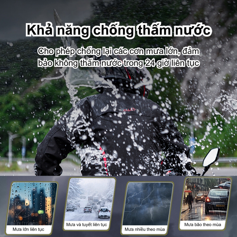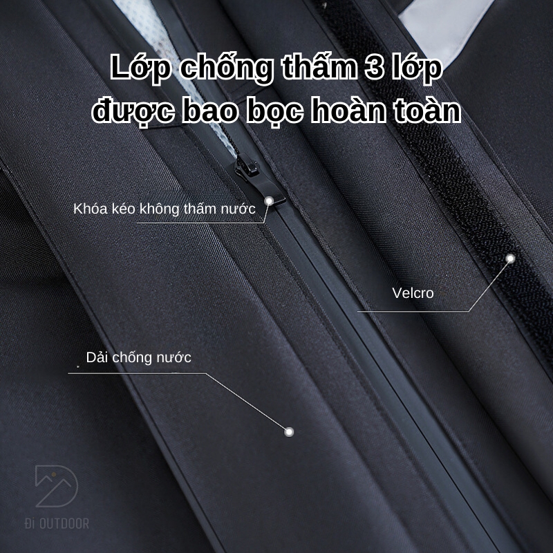 - Khả năng chống thấm vượt trội: Được trang bị 4 lớp bảo vệ chống thấm nước, sản phẩm có khả năng chịu được những cơn mưa lớn kéo dài suốt 24 giờ không thấm. Hệ thống chống thấm toàn diện này đảm bảo bạn luôn khô ráo trong mọi điều kiện thời tiết, kể cả mưa bão mùa đông hay gió lớn mùa thu.