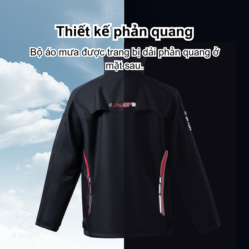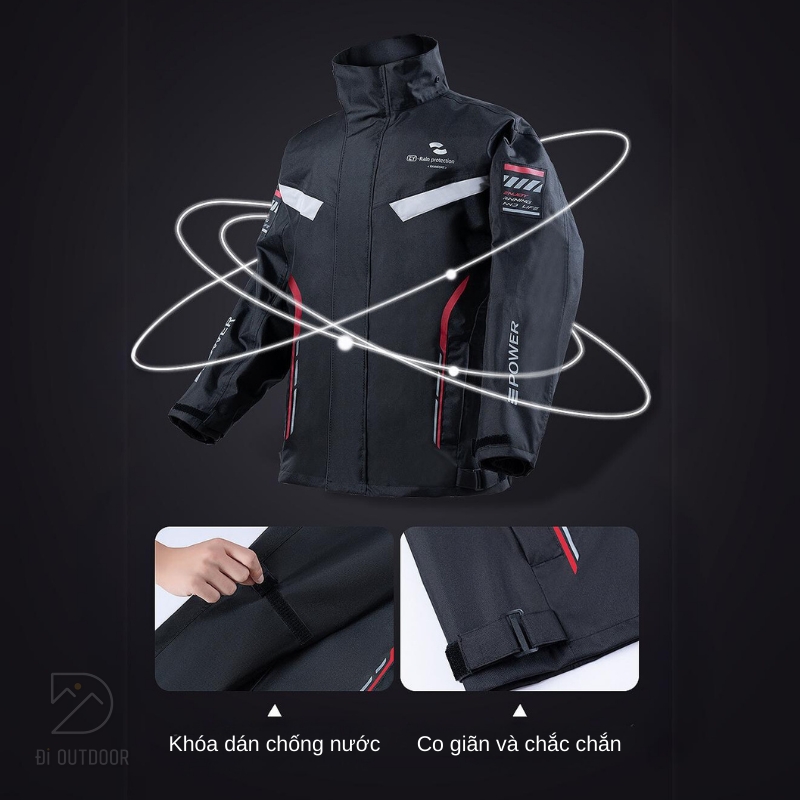 - Hệ thống điều chỉnh linh hoạt: Áo mưa bộ được trang bị nhiều nút điều chỉnh tại các vị trí như eo, cổ tay và cổ áo, giúp bạn dễ dàng tùy chỉnh độ vừa vặn với cơ thể. Điều này không chỉ tạo sự thoải mái khi di chuyển mà còn giúp ngăn chặn gió và nước xâm nhập từ các khe hở.