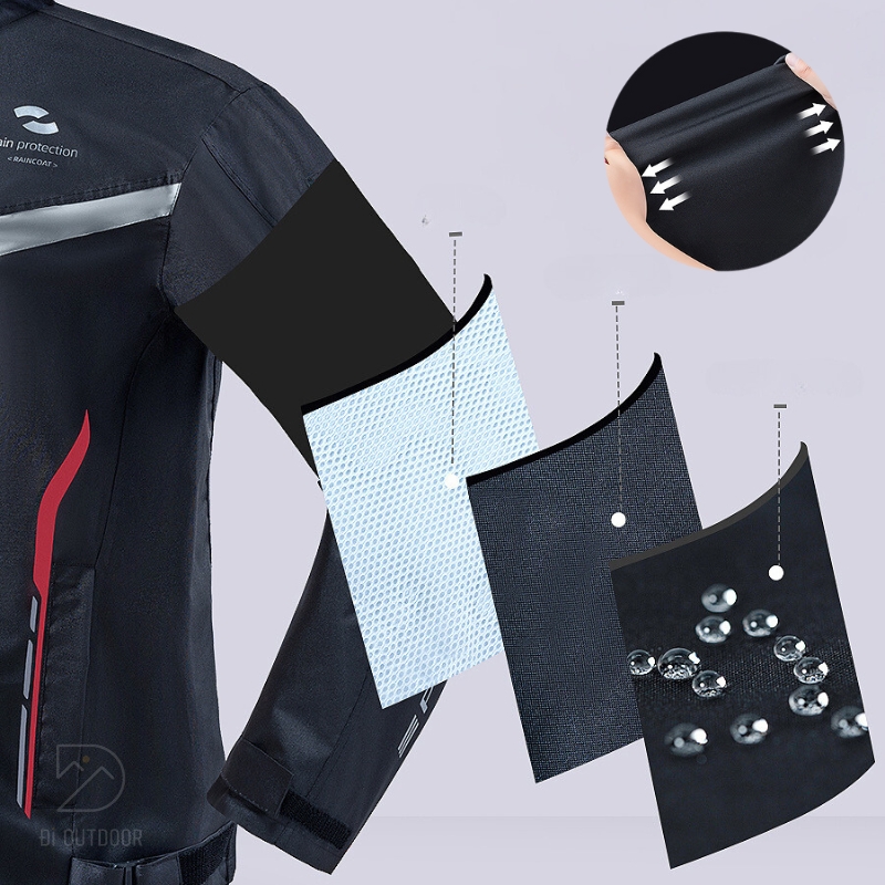 - Đường cắt ôm sát cơ thể: Áo mưa bộ ZY-8129 được thiết kế công thái học giúp áo ôm vừa vặn cơ thể, hỗ trợ tối đa cho các chuyển động của người lái xe moto. Áo không chỉ chống nước mà còn mang đến cảm giác nhẹ nhàng, thoải mái, giúp bạn tự tin trong mọi hành trình.