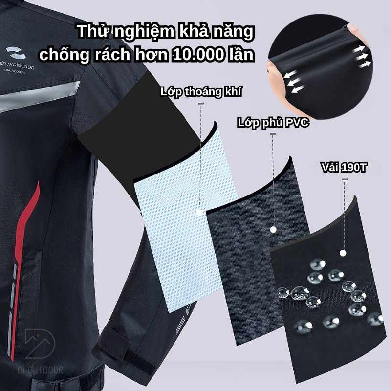 - Thoáng khí tối đa: Với hơn 15,178 lỗ thoáng khí trên toàn thân áo, bạn sẽ không gặp phải tình trạng bí bách, đổ mồ hôi bên trong áo mưa. Thiết kế này cho phép không khí lưu thông tự nhiên, mang lại cảm giác dễ chịu ngay cả khi mặc áo mưa trong thời gian dài.