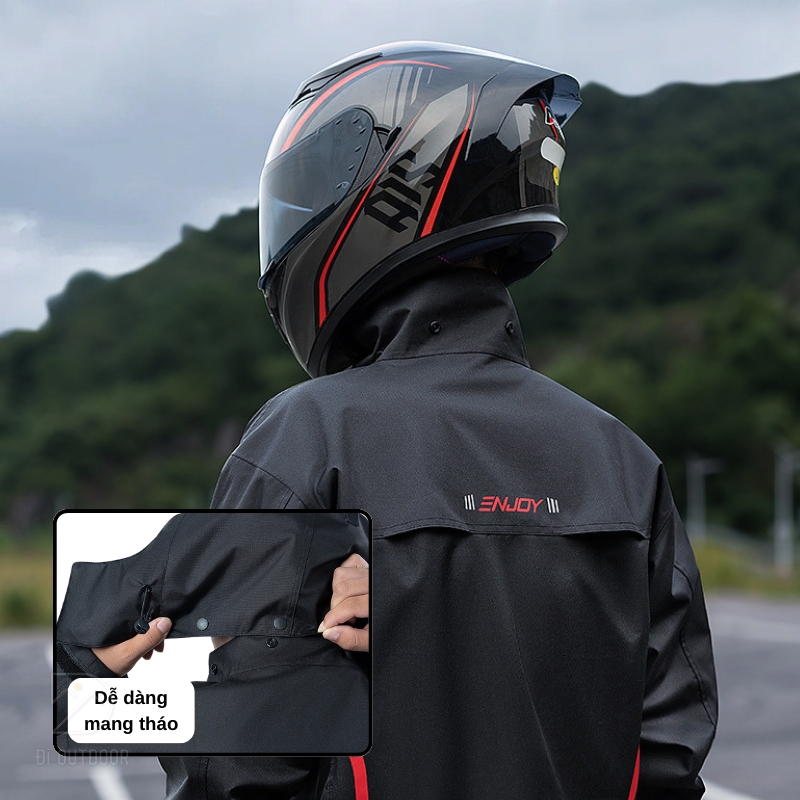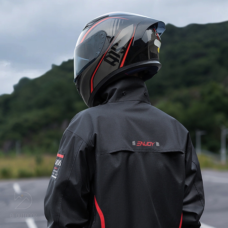 Áo mưa moto có thiết kế công thái học ôm sát cơ thể, khóa kéo chống thấm và các chi tiết điều chỉnh linh hoạt mang lại sự tiện lợi tối đa. Áo mưa cũng được trang bị mũ tháo rời và lớp phủ chống gió, lý tưởng cho cả ngày mưa gió hay những chuyến đi xa.
