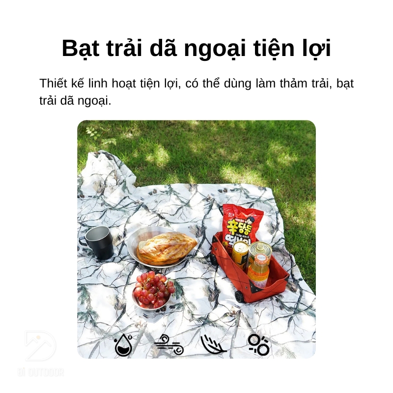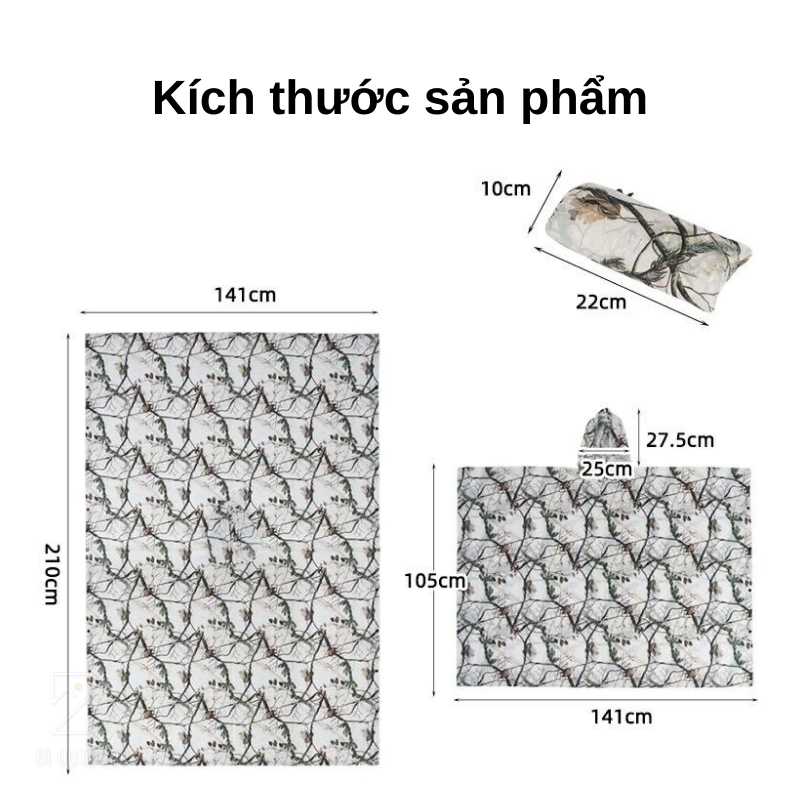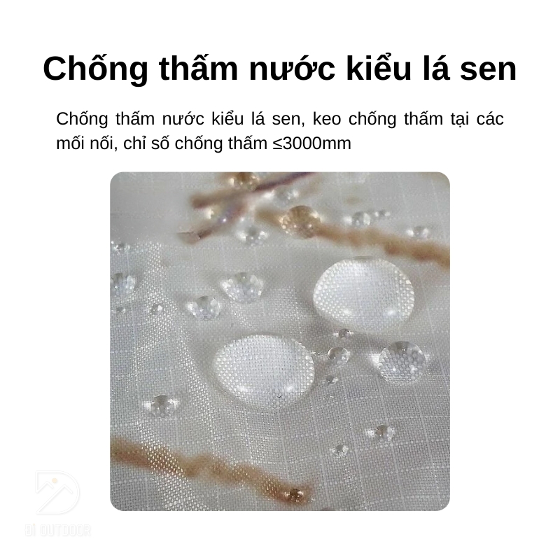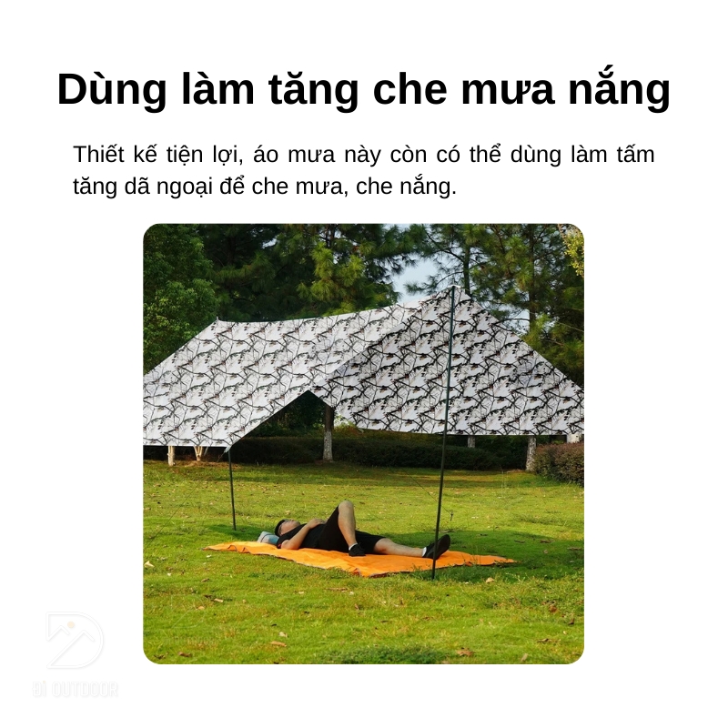 Chất liệu vải taffeta polyester 210T bền chắc, cùng với chỉ số chống thấm nước lên đến 3000mm, đảm bảo bạn luôn khô ráo dù phải đối mặt với những cơn mưa lớn. Không những thế, áo mưa còn có thể biến thành một tấm trải lớn, sử dụng như một tấm tăng che mưa nắng hoặc làm tấm trải picnic trên cỏ.