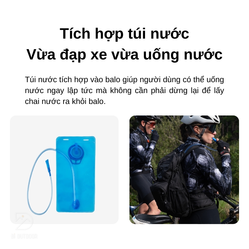 Tính năng tích hợp túi nước giúp người dùng có thể uống nước ngay lập tức mà không cần phải dừng lại để lấy chai nước ra khỏi balo. Sự tiện lợi này làm cho trải nghiệm đạp xe trở nên mượt mà và không gián đoạn.