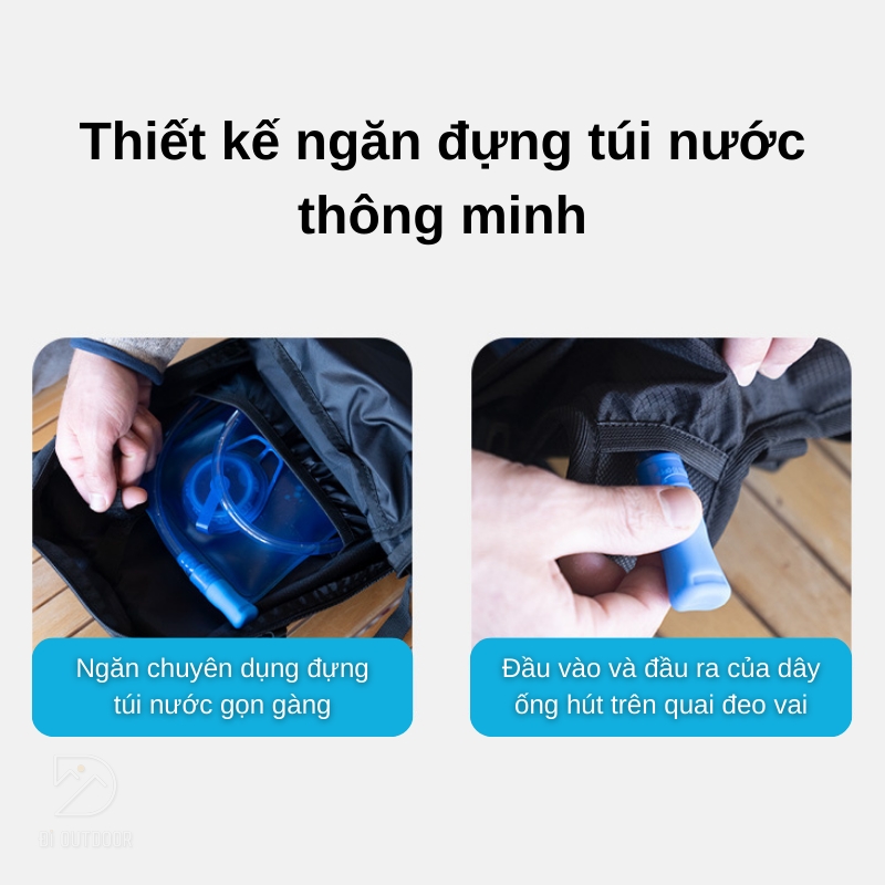 Ngăn chuyên dụng đựng túi nước được thiết kế gọn gàng, giúp bảo vệ túi nước và giữ cho nước luôn ở nhiệt độ mát, sẵn sàng để sử dụng.