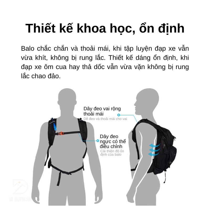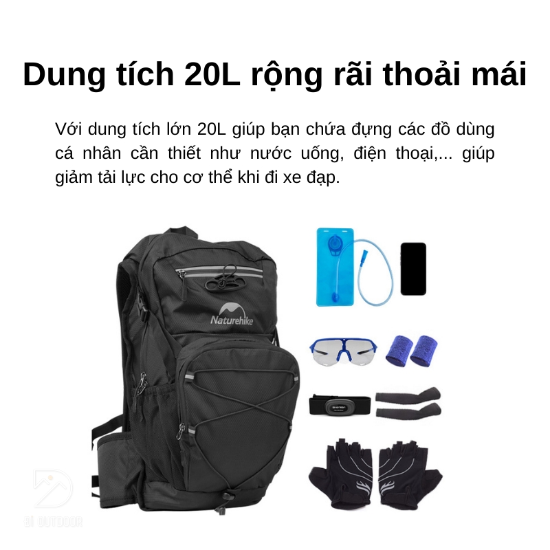 Với dung tích 20L, balo không chỉ đủ lớn để chứa đựng các vật dụng cá nhân quan trọng như nước uống, điện thoại mà còn giúp giảm tải lực cho cơ thể khi đi xe đạp.