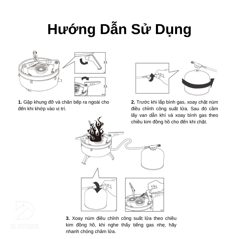 - Chân đế ba gấp: Giữ bếp ổn định ngay cả trên các địa hình không bằng phẳng.
