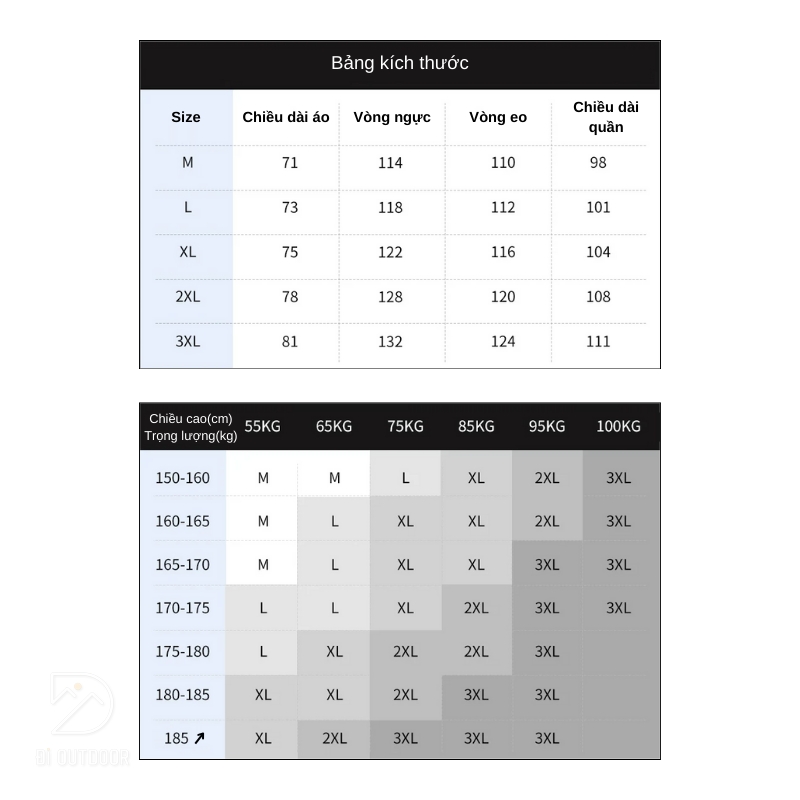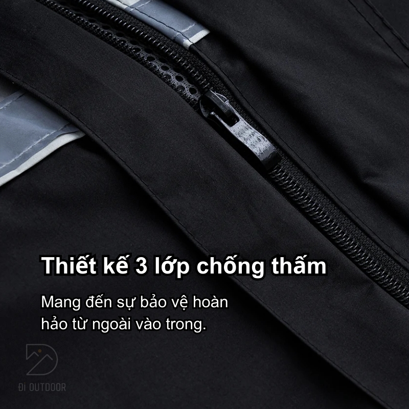 - Chống thấm tối ưu: Lớp ngoài chống mưa, lớp giữa giữ ấm, lớp trong thoáng khí.