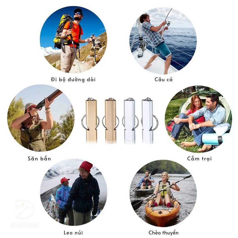 - Chống nước hiệu quả: Buồng âm không có hạt, giúp còi hoạt động tốt ngay cả khi bị ướt, lý tưởng cho các hoạt động như hiking, câu cá, leo núi, đi thuyền.