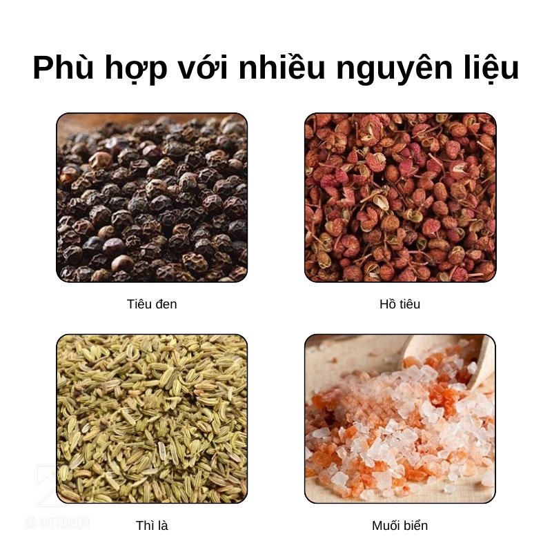 | Công dụng | Xay tiêu, xay muối, thì là, gia vị khác v.v... |