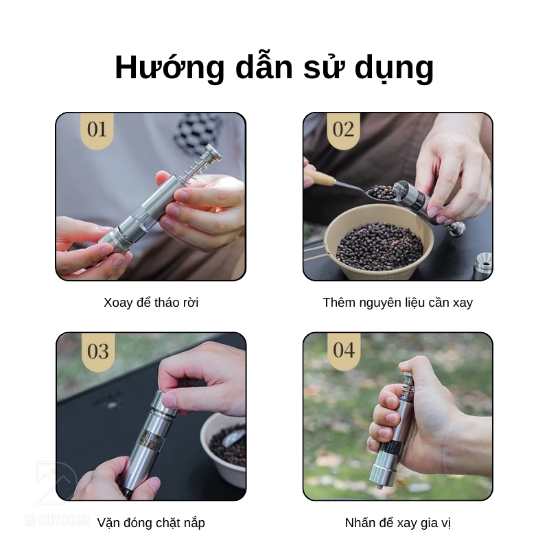 Cối Xay Tiêu – Muối Mini Dã Ngoại Thép Không Gỉ