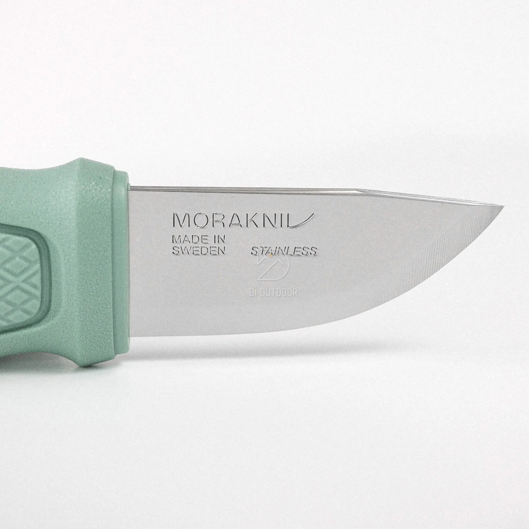 - Lưỡi thép không gỉ sáng bóng: Sử dụng thép không gỉ đặc trưng của Morakniv, lưỡi dao được xử lý nhiệt tinh xảo giúp giữ độ sắc lâu và chống rỉ sét tuyệt đối. Bề mặt lưỡi được đánh bóng gương tạo vẻ ngoài tinh tế và sạch sẽ.