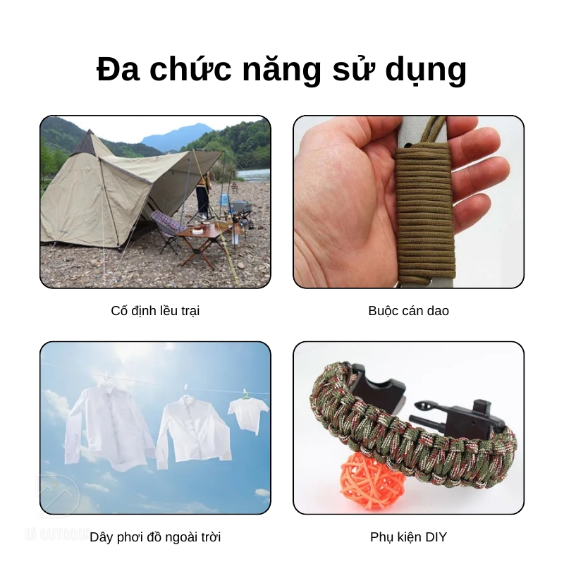 - Ứng dụng đa năng: Thích hợp để sử dụng làm dây thừng, căng lều trại, hoặc làm vòng tay DIY.