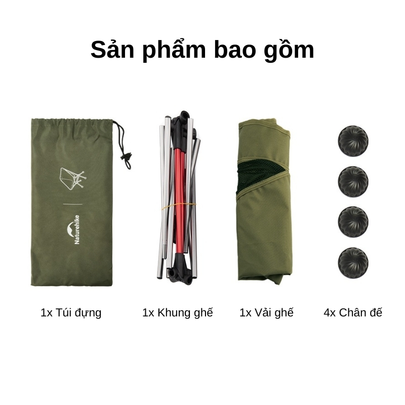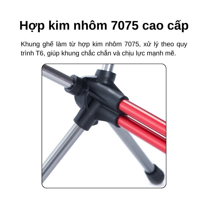 Kết cấu ống nhôm 7075 xử lý T6 cho độ cứng cao, giảm xoắn vặn và giữ khung ổn định khi đặt trên cỏ, đất hay sỏi cát. Đây là nền tảng quan trọng để ghế xếp gọn cắm trại Naturehike hoạt động ổn định trong suốt phiên ngồi.
