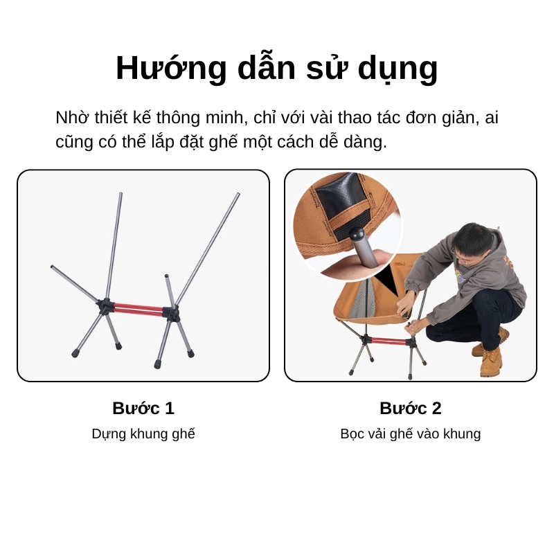Đặc điểm nổi bật | Khung nhôm siêu bền, vải chống rách thoáng khí, chân đế chống lún, gấp gọn dễ mang theo |