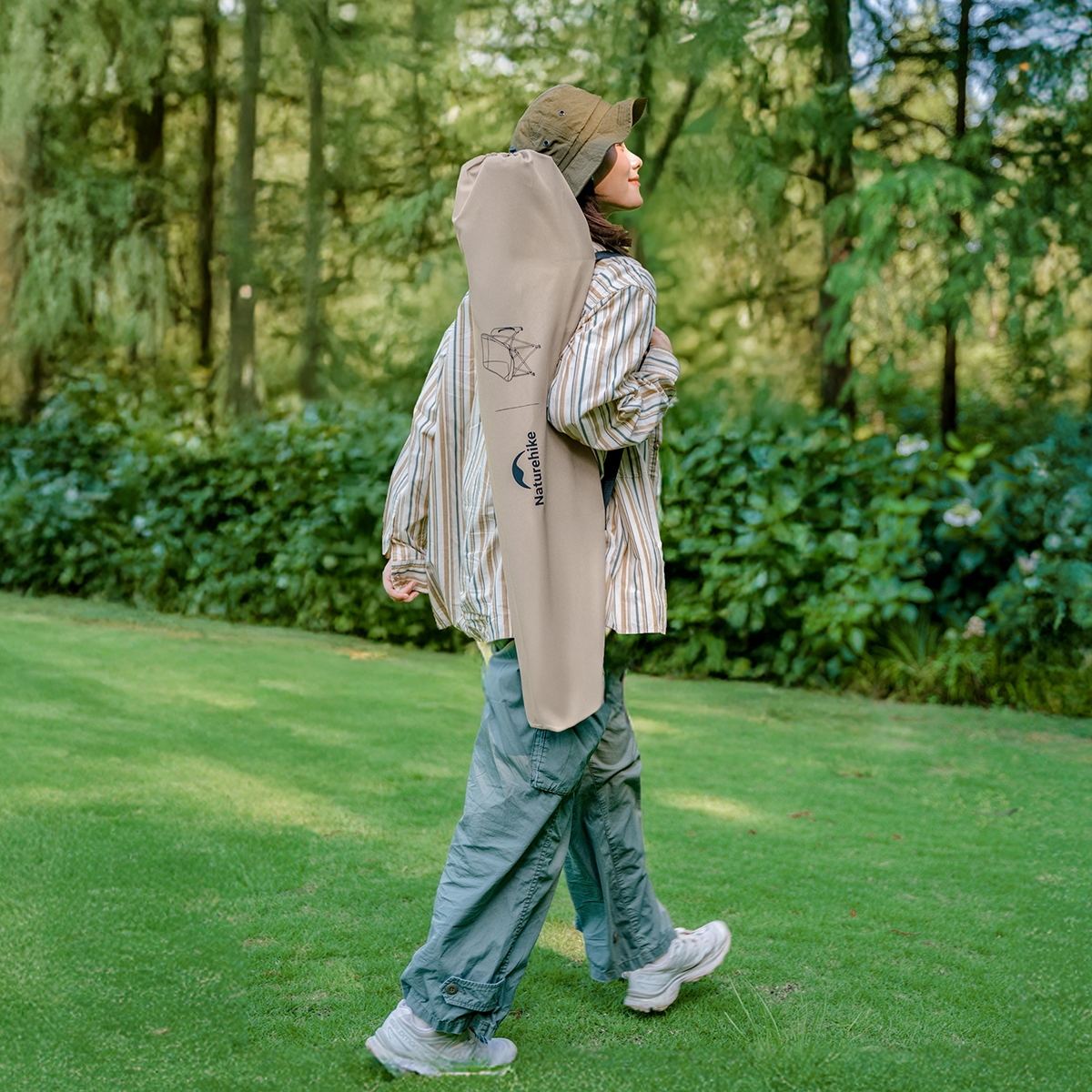 Với ghế outdoor, độ vững thường quyết định trải nghiệm. Ghế xếp Stellaluna T04 Naturehike dùng khung thép và hệ chân chữ X, kết hợp đế cao su để tăng độ bám. Khi đặt ghế trên nền không phẳng hoàn toàn, ghế vẫn giữ cảm giác chắc và ổn định trong các thao tác ngồi – đứng.
