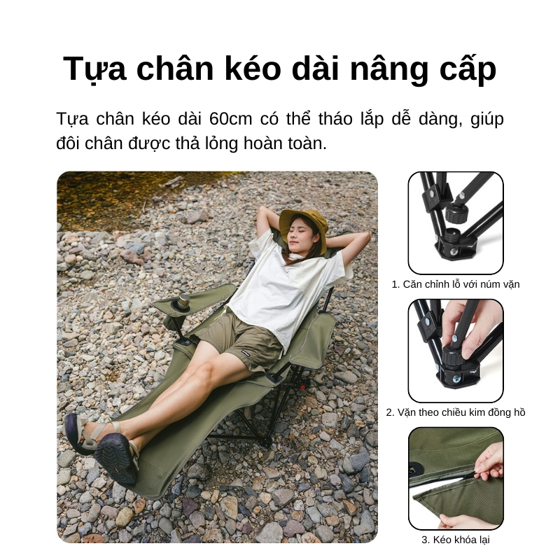 Tựa chân | Kéo dài 60cm, tháo lắp dễ dàng |