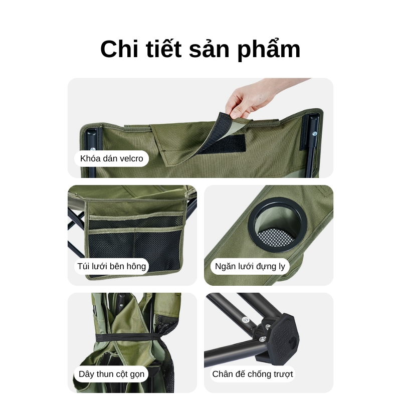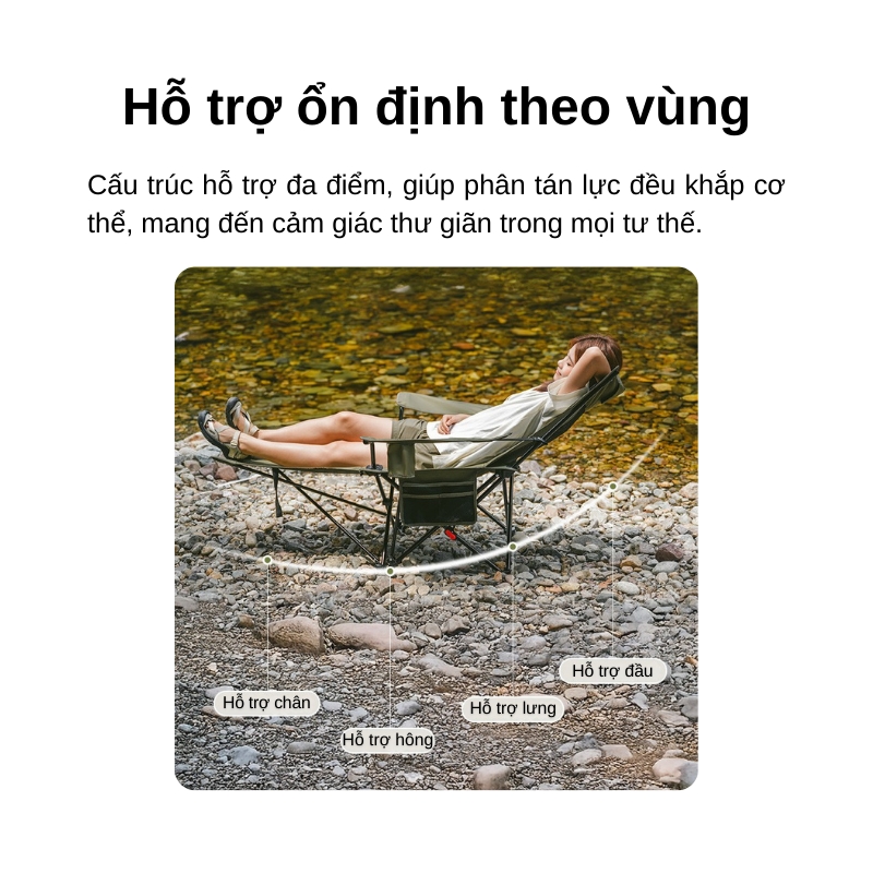 Khung thép carbon tạo nền tảng ổn định, kết hợp đế chống trượt để bám nền cỏ, đất hoặc bề mặt sỏi cát tốt hơn, hạn chế xê dịch khi thay đổi tư thế.