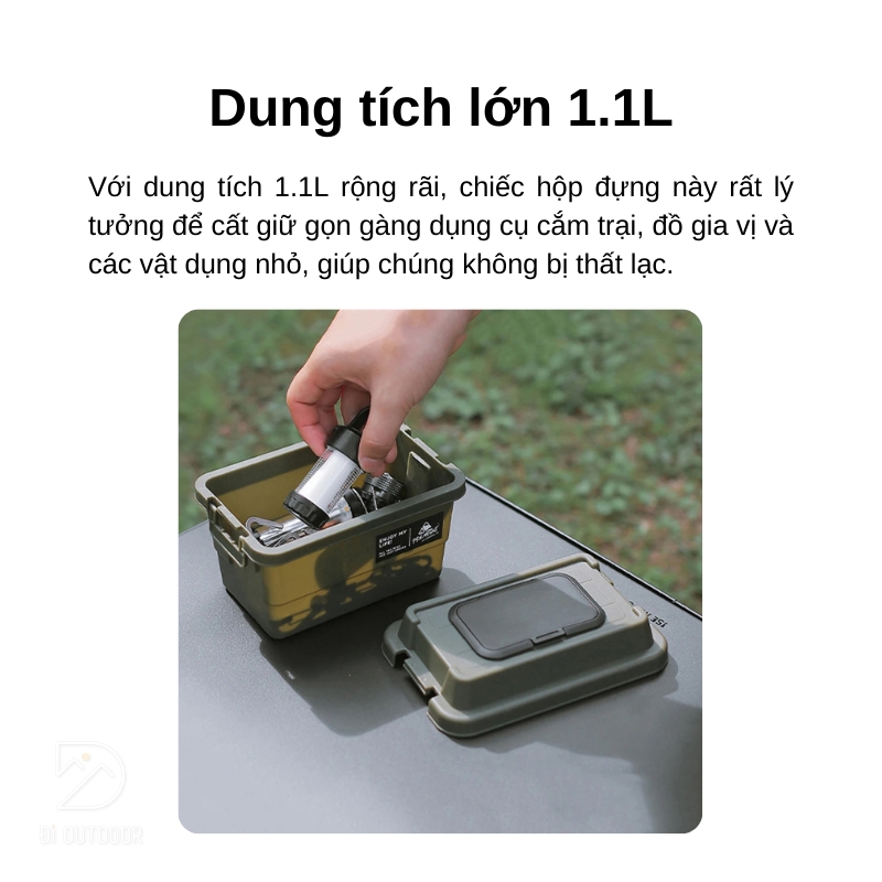 Với thiết kế nhỏ gọn và tiện lợi, chiếc hộp nhựa đựng giấy này không chỉ giúp bạn tổ chức gọn gàng dụng cụ cắm trại và đồ gia vị mà còn bảo vệ chúng khỏi bị thất lạc trong khi bạn di chuyển. Dung tích lớn 1.1L sẽ đủ cho bạn cất giữ các vật dụng nhỏ một cách dễ dàng. Đồng thời, vật liệu nhựa chất lượng cao cấp giúp hộp nhựa này đảm bảo an toàn cho đồ dùng bên trong.