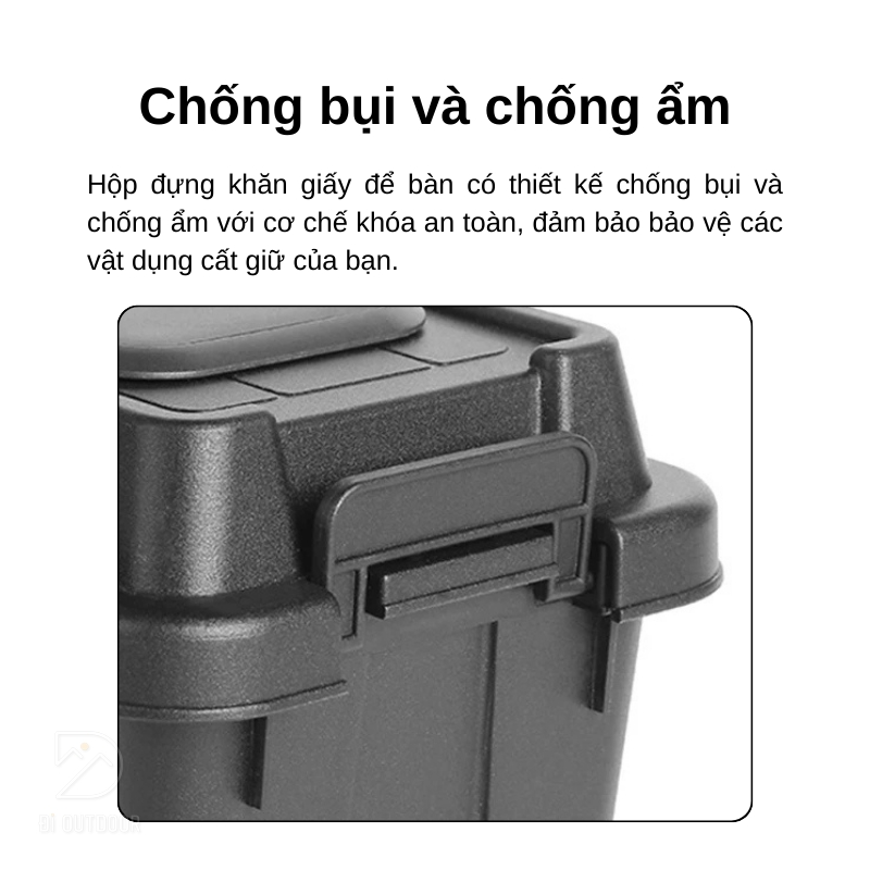 Không chỉ đơn giản là một hộp đựng khăn giấy, sản phẩm còn có thiết kế khóa chống bụi và chống ẩm hiệu quả. Nhờ vào cơ chế khóa an toàn, bạn có thể an tâm bảo vệ các vật dụng được cất giữ bên trong hộp. Điều này giúp giữ cho khăn giấy luôn sạch sẽ và khô ráo, sẵn sàng sử dụng mọi lúc. Đồng thời, việc chống bụi và chống ẩm cũng giúp kéo dài tuổi thọ của sản phẩm, tạo điều kiện tốt nhất để bạn sử dụng lâu dài mà không lo lắng về tình trạng bẩn thỉu hay ẩm ướt.