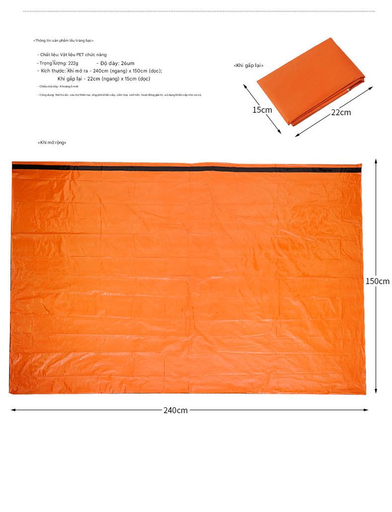 Nhỏ gọn và tiện lợi: Trọng lượng nhẹ và dễ dàng gấp gọn, lều khẩn cấp là lựa chọn hoàn hảo cho những chuyến đi xa hoặc tình huống cần sự linh hoạt.