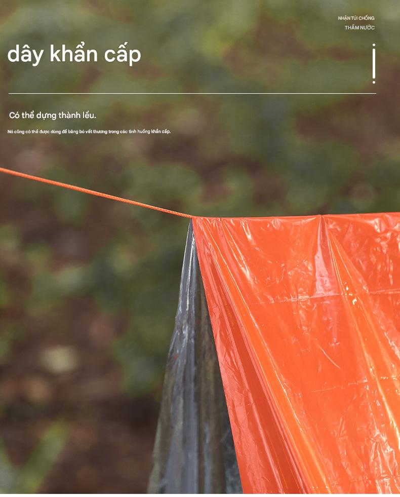Dụng cụ cứu hộ cần thiết: Lều này là một phần quan trọng của bộ dụng cụ cứu hộ cá nhân. Dễ dàng mang theo trong xe hơi, túi du lịch hoặc ba lô, bạn sẽ luôn sẵn sàng cho bất kỳ tình huống khẩn cấp nào.