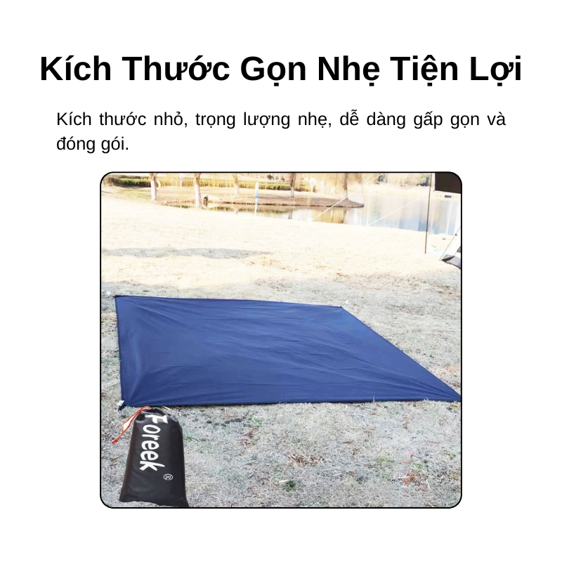 Dù có diện tích che phủ rộng nhưng tăng bạt lại rất nhẹ, với trọng lượng chỉ từ 350g – 1100g tùy kích thước. Khi không sử dụng, bạt có thể gấp gọn trong túi đựng kèm theo, giúp bạn dễ dàng mang theo trong những chuyến đi xa mà không chiếm nhiều không gian trong balo hoặc cốp xe.
