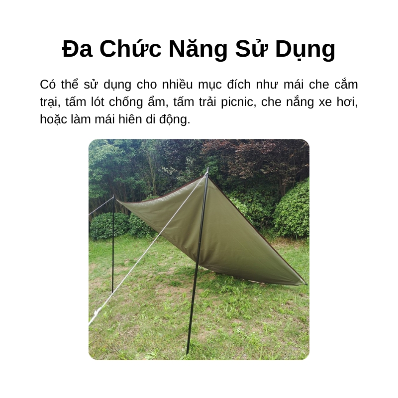 | Công dụng | Làm mái che, tấm lót chống ẩm, trải picnic |