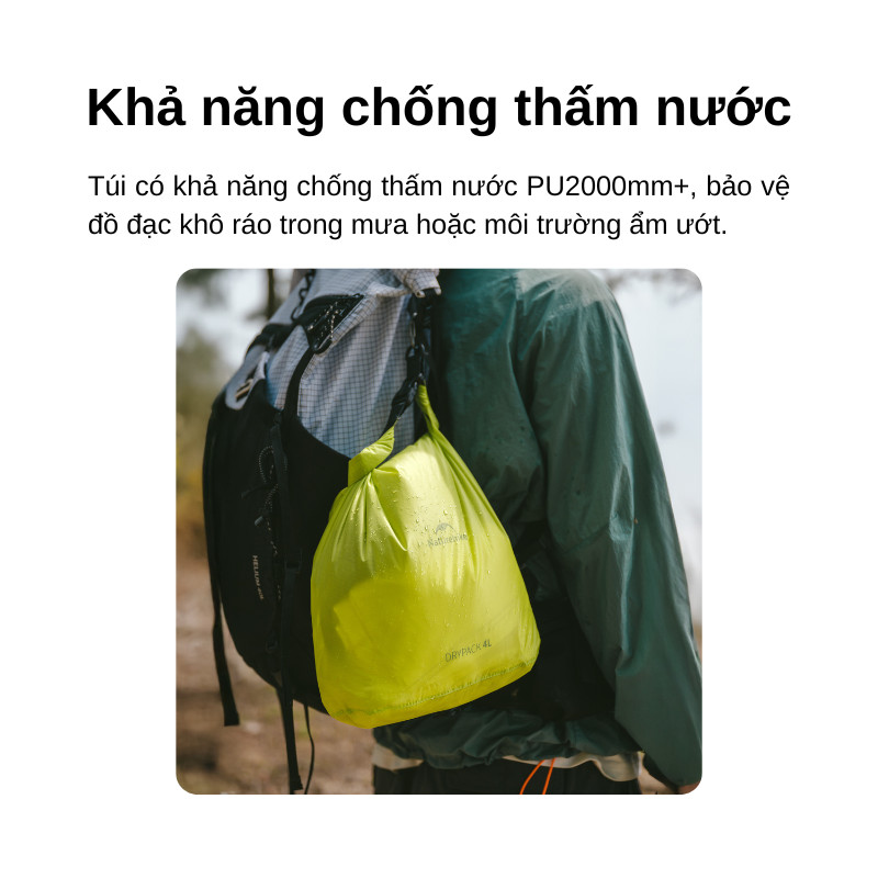 Nếu bạn cần một túi chống nước siêu nhẹ để nén quần áo và chống ẩm “chuẩn chỉnh”, Naturehike CNK2550XB012 là lựa chọn đáng tin: roll-top, PU2000mm+, nylon phủ silicone bền bỉ, 2/4/8L linh hoạt. Đây là dry bag Naturehike sinh ra cho cắm trại, trekking, hiking, đi phượt lẫn du lịch đô thị—nhẹ, gọn, bền và cực “được việc”.