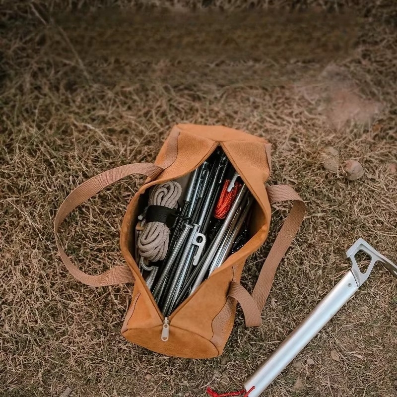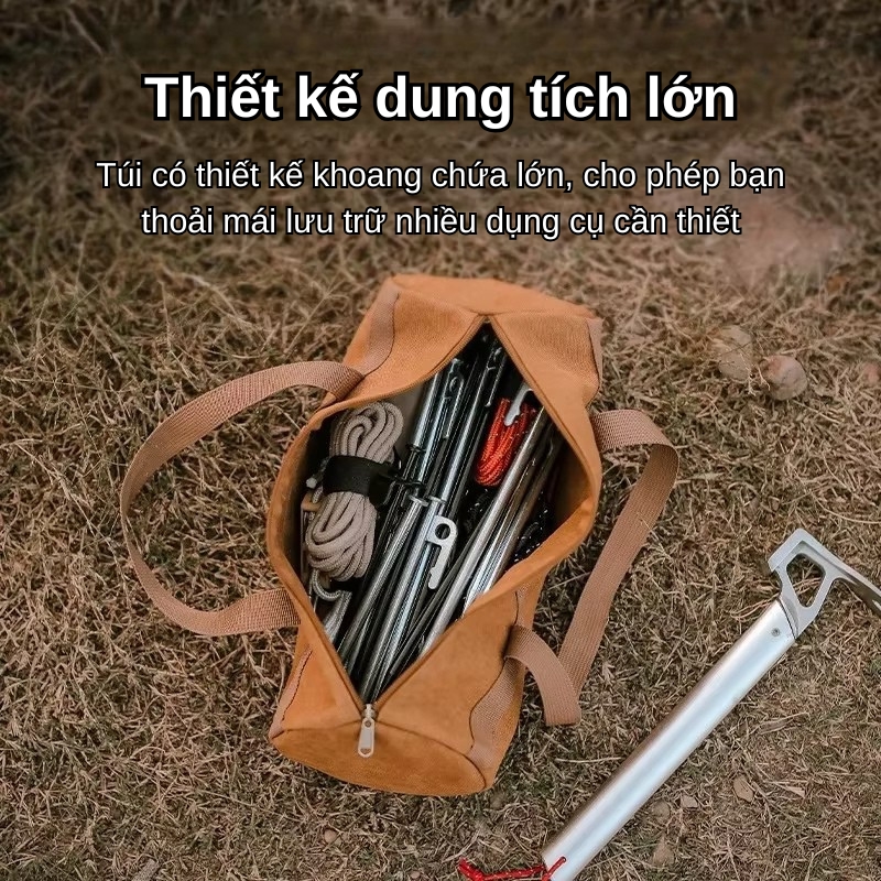 Những món như búa, cọc lều, kìm, dao đa năng… rất dễ làm rách túi mỏng. Chọn túi canvas đựng dụng cụ sẽ yên tâm hơn vì chất vải dày, chịu mài mòn tốt, dùng lâu không “tưa chỉ” nhanh.