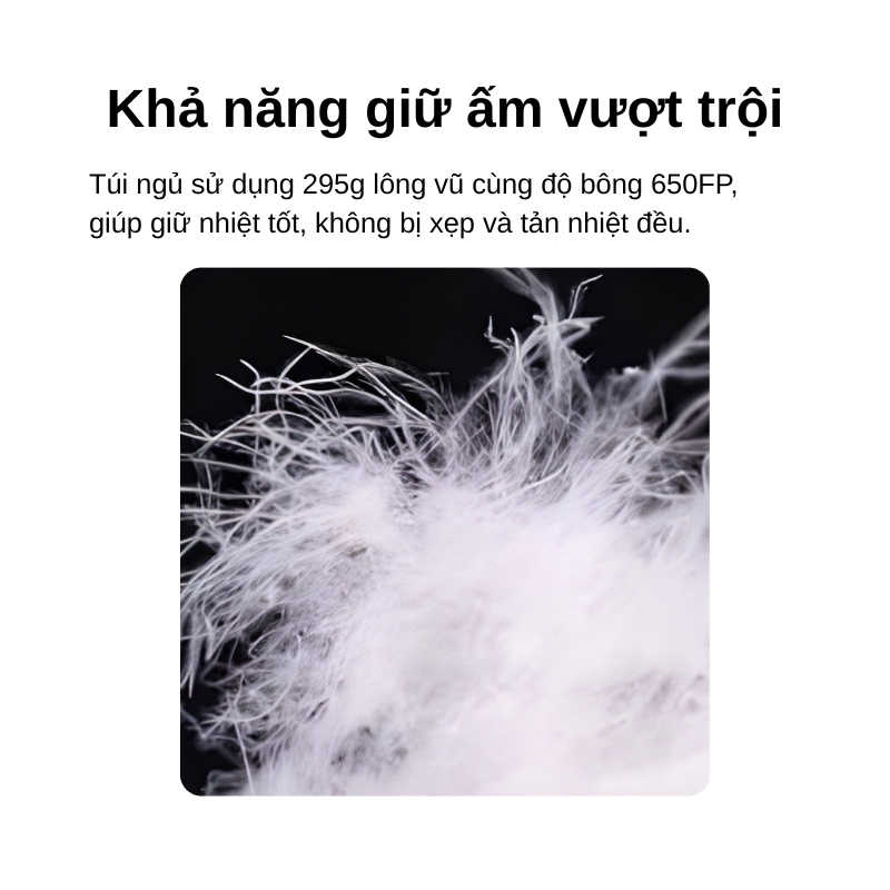 - 650FP + 295g lông vũ: nhẹ nhưng vẫn tạo độ bông (loft) tốt để giữ ấm.